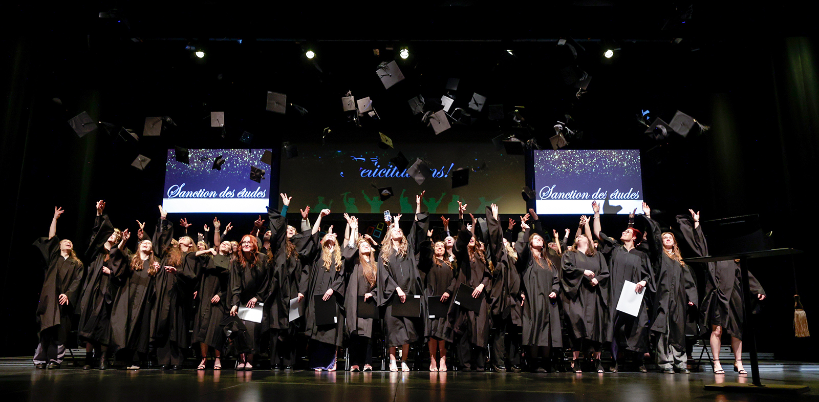 Au total, 417 diplômé(e)s ont enfilé la toge et le mortier pour vivre ce moment symbolique qui marque la fin de leur parcours collégial et le début d’un nouveau chapitre. L’émotion était palpable lors de la sanction officielle des études, moment