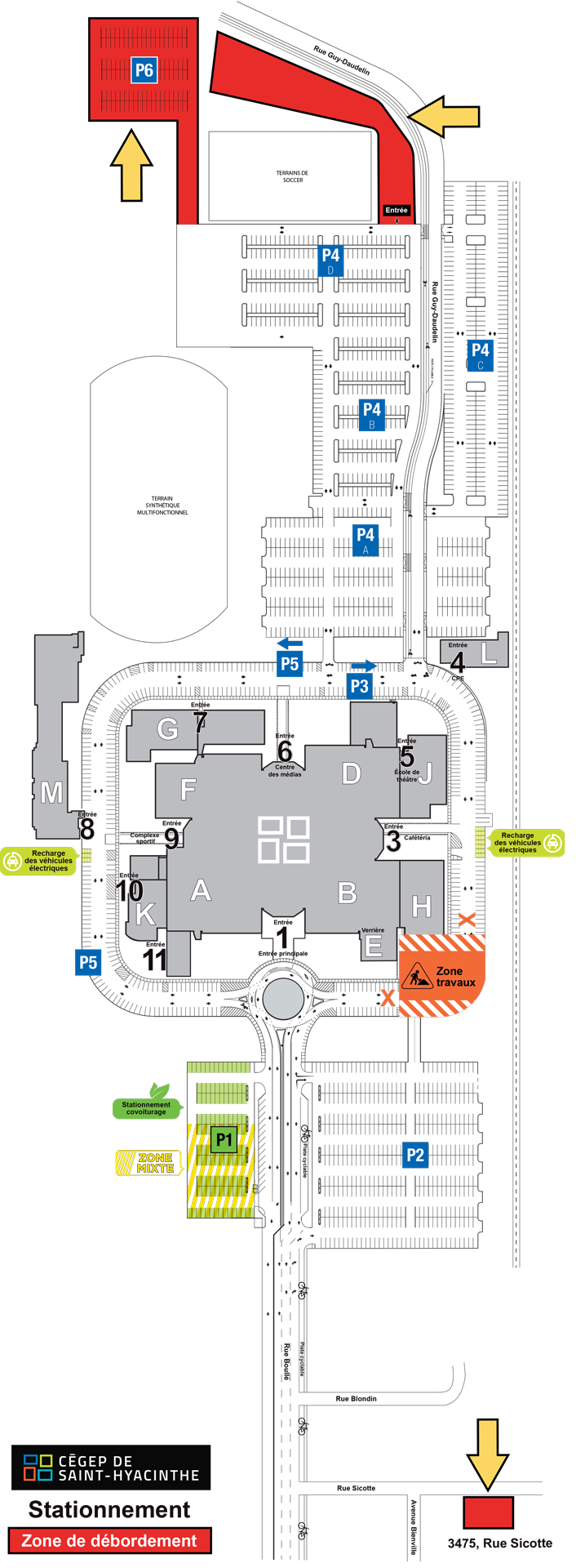 Pour connaître les espaces réservés aux personnes à mobilité réduite, au covoiturage ou encore l’emplacement des bornes de recharge, consultez le plan de stationnement ci-dessous.